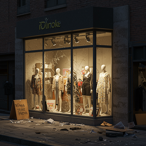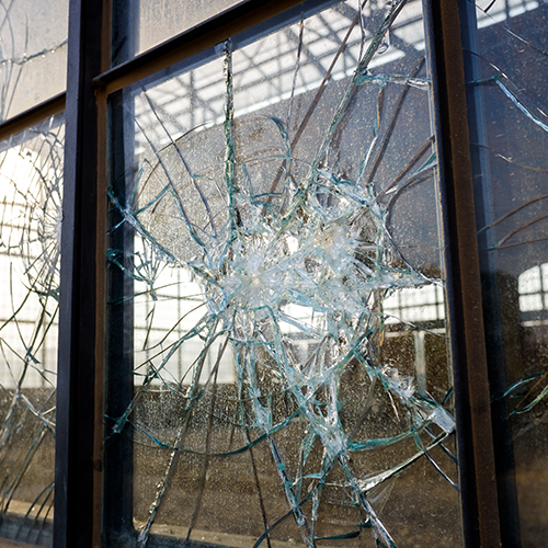 Shattered or cracked storefront windows